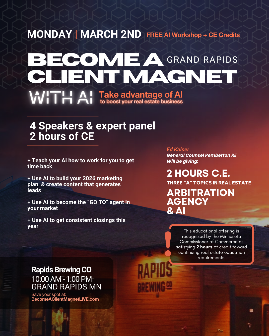 This educational offering is recognized by the Minnesota Commissioner of Commerce as satisfying 2 hours of credit toward continuing real estate education requirements.
