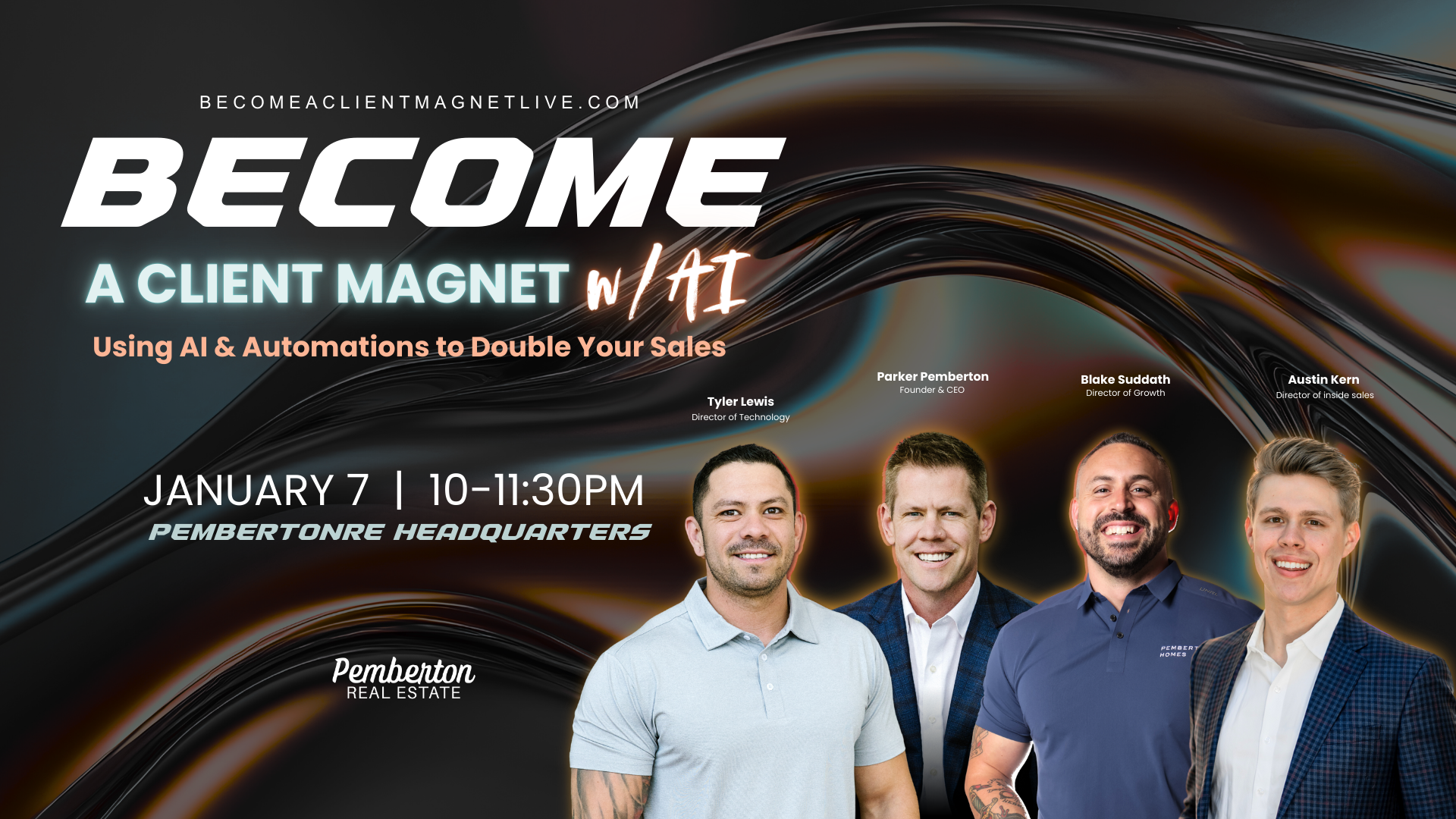 By registering on the becomeaclientmagnetlive.com website, you consent to receive calls, texts, and emails from Pemberton Real Estate LLC regarding events, courses, educational information, and information on requested deliverables from lead magnets and webinars. This consent allows Pemberton Real Estate LLC to contact you in compliance with the Telephone Consumer Protection Act (TCPA) guidelines. We adhere to TCPA and Do Not Call (DNC) guidelines. Please be aware that Pemberton Real Estate LLC may utilize SMS/MMS communications, Al generative voice technology, and marketing communications as part of this consent. Automated technology may be employed in communications, and consent is not a condition to obtain any goods, services, or credit. Additionally, Pemberton Real Estate LLC may use pre-recorded or artificial voice messages in outreach efforts. You can revoke this consent at any time by following the opt-out instructions provided in our communications.